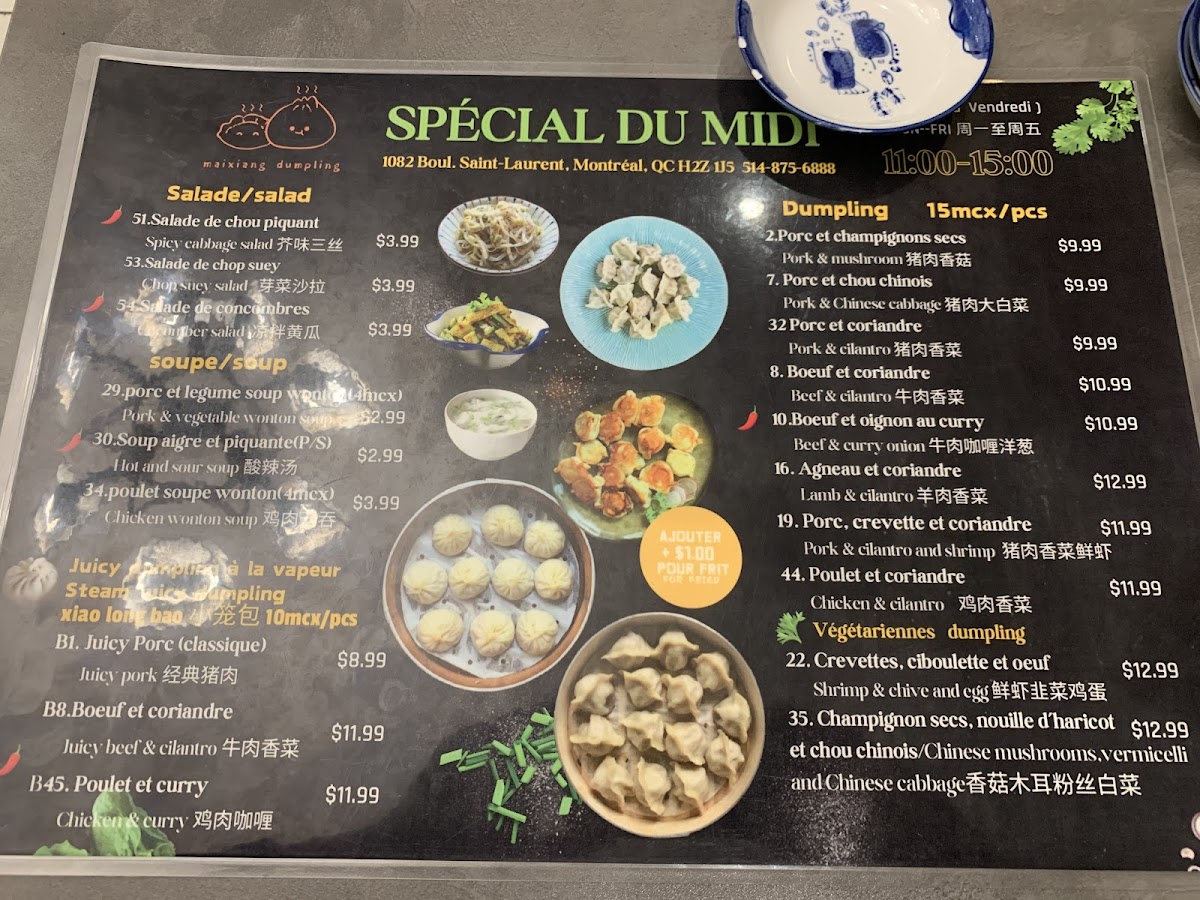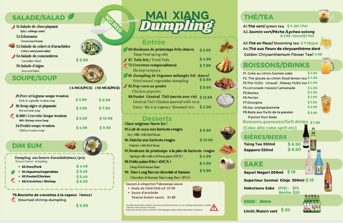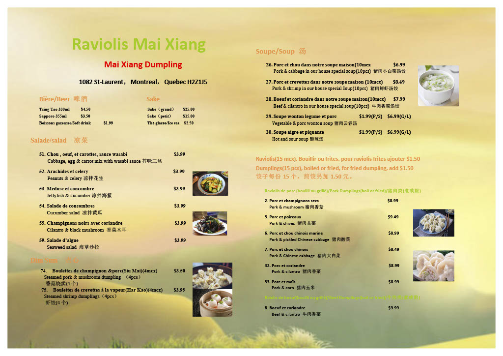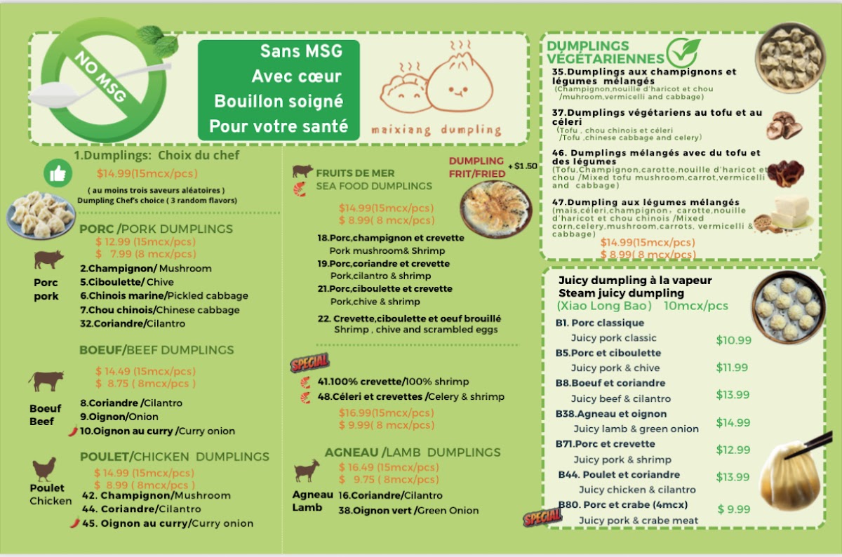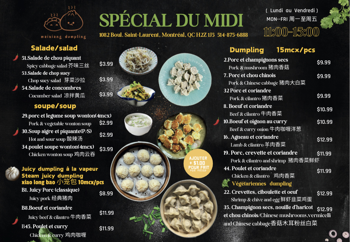 Mai Xiang Yuan Dumpling Chinatown Menu